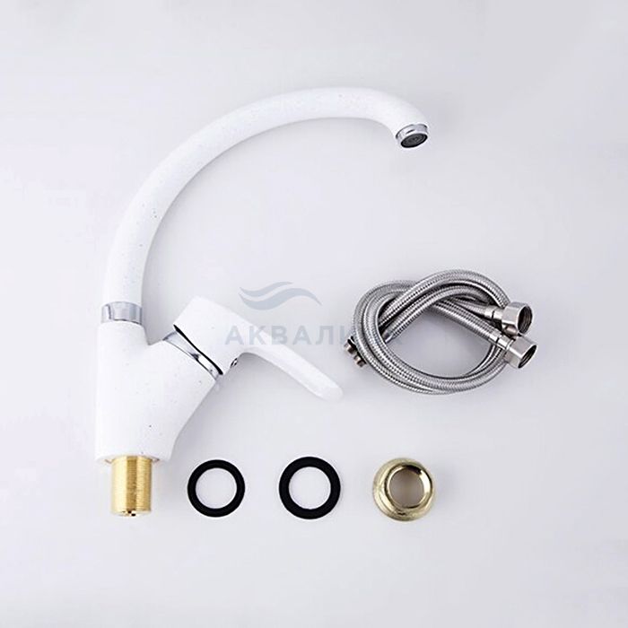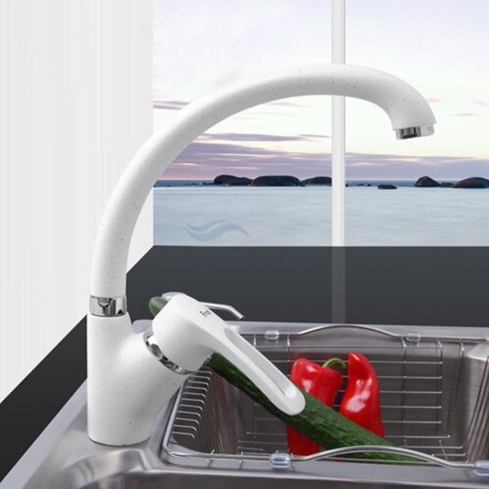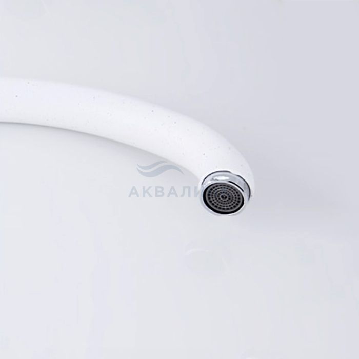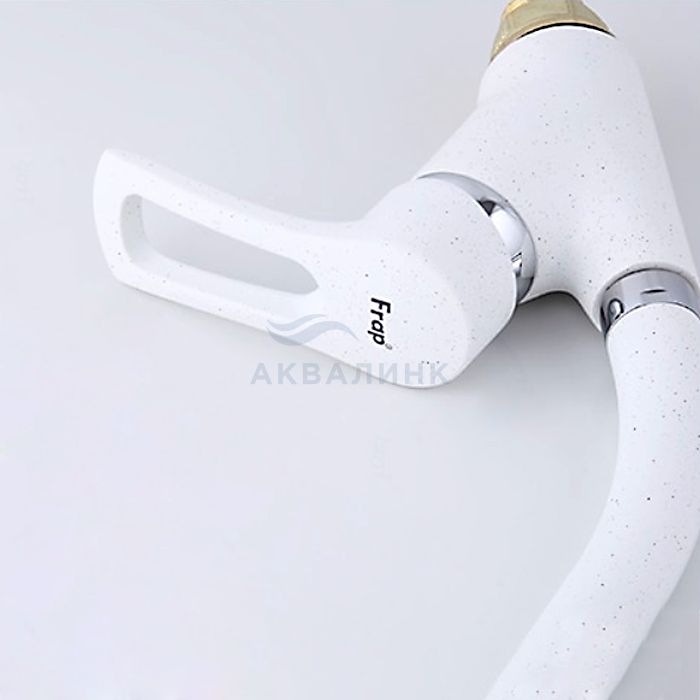 Особенности Керамический картридж Frap Ø40 мм Аэратор Frap Фактура под гранит белого цвета Поворотный излив В комплекте Гибкая подводка ½ - 40 см