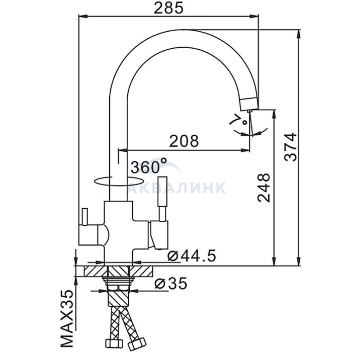 F4352 Смеситель для кухни с подключением фильтра питьевой воды 35мм хром, 1/10