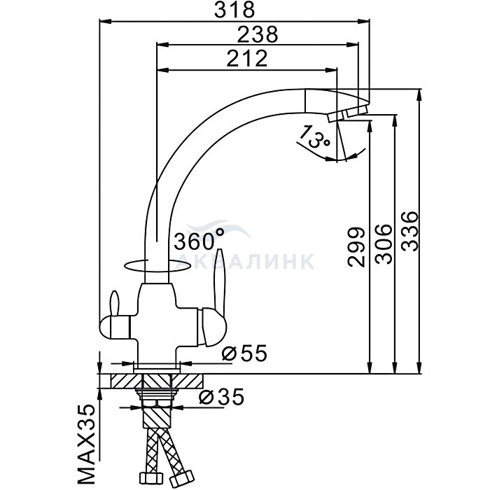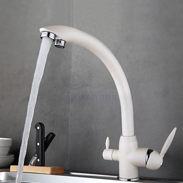 Смеситель для кухни FRAP H99 F4399-8 белый, со встроенным фильтром (краном) под питьевую воду
