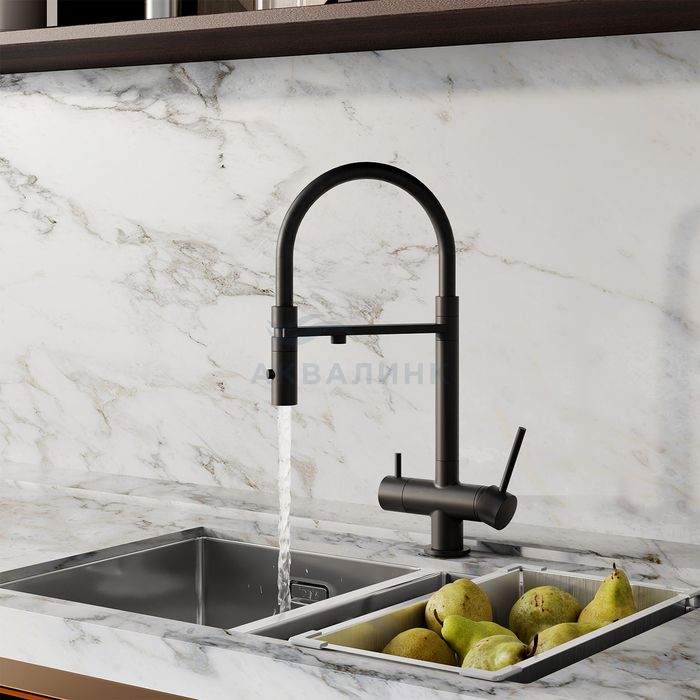 Смеситель для кухни IDDIS Эйс (Ace), с каналом питьевой воды, гибкий излив, черный матовый, ACEBLFFi05