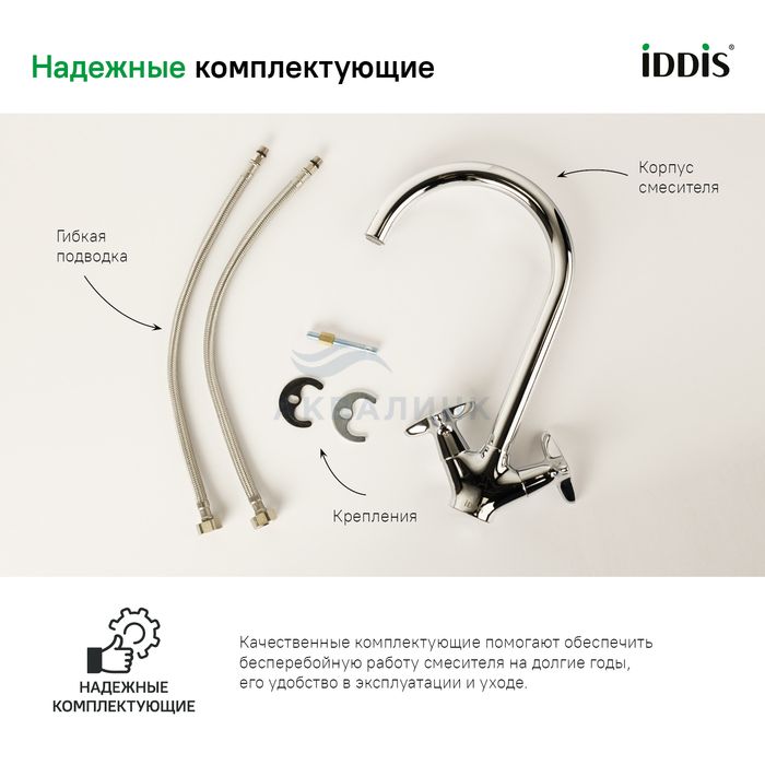 Смесители IDDIS разработаны с учетом специфики российских условий эксплуатации и благодаря продуманному дизайну, современным  материалам и комплектующим — в том числе, прочному корпусу из первичной латуни и качественным водозапорным механизмам — прослужат долго.