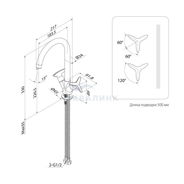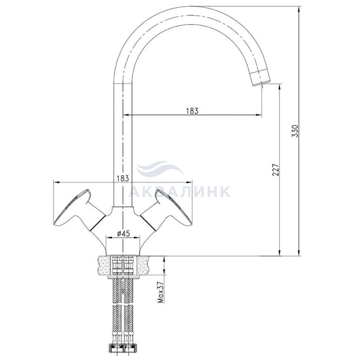 Высота излива, мм 227