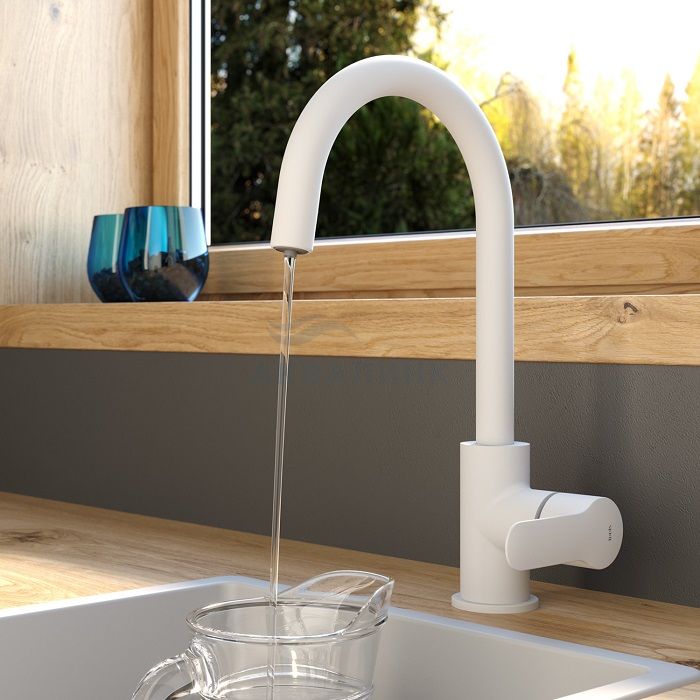 Смеситель для кухни IDDIS Cuba с каналом питьевой воды, белый матовый, CUBWTFJi05 Распродажа с магазина! Смеситель для кухни с каналом для фильтрованной воды, белый матовый, Cuba, IDDIS, CUBWTFJi05 представляет уникальную технологию управления фильтрованной водой, которая практически не имеет аналогов: она включается той же ручкой, что и обычная. Чтобы налить стакан чистой воды, достаточно просто повернуть ручку на себя в закрытом состоянии. Нет необходимости устанавливать отдельный смеситель и сверлить под него отверстие. • Плавный ход ручки и абсолютная точность регулировки температуры и напора воды — за счет качественного керамического картриджа Softap. Угол открытия ручки для включения водопроводной воды – 90 градусов (45 градусов от себя, 45 – на себя). • Высокий поворотный излив делает смеситель более практичным. • Надежный корпус из прочной первичной латуни — стойкий к коррозии, резким изменениям давления и перепадам температуры воды.