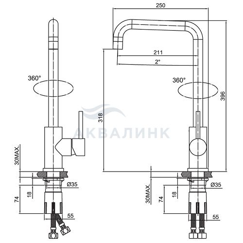 Высота излива, мм 318