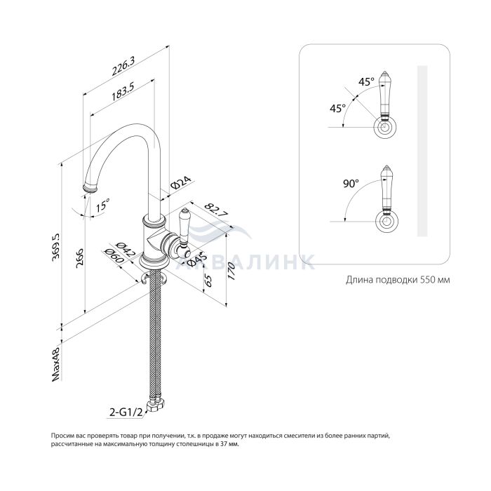Толщина столешницы для установки с 35 мм до 48 ммOXFSBJ0i05 Смеситель для кухни, Oxford, IDDIS, OXFSBJ0i05 Смеситель для кухни, однозахватный, латунь, никель-хромовое покрытие, керамический картридж Softap 35 мм, силиконовый аэратор Neoperl, керамическая рукоятка. В комплекте: гибкая подводка, крепёж. Упаковка: коробка, микрогофрокартон, индивид. Мешок.