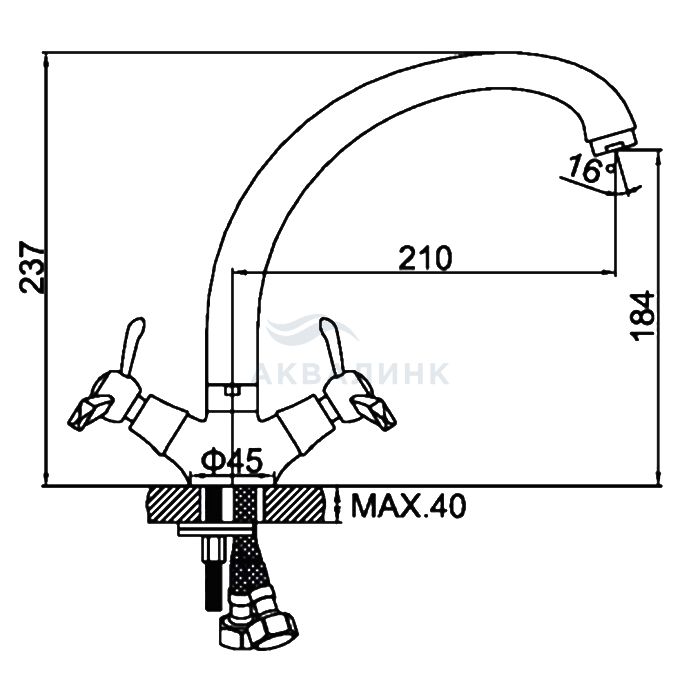 Cмеситель для кухни LEDEME L4212 крест керамика. Керамическая кран-букса Ledeme с поворотом на 90° Аэратор Ledeme Поворотный излив В комплекте Гибкая подводка ½ - 30 см