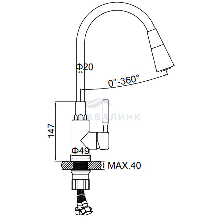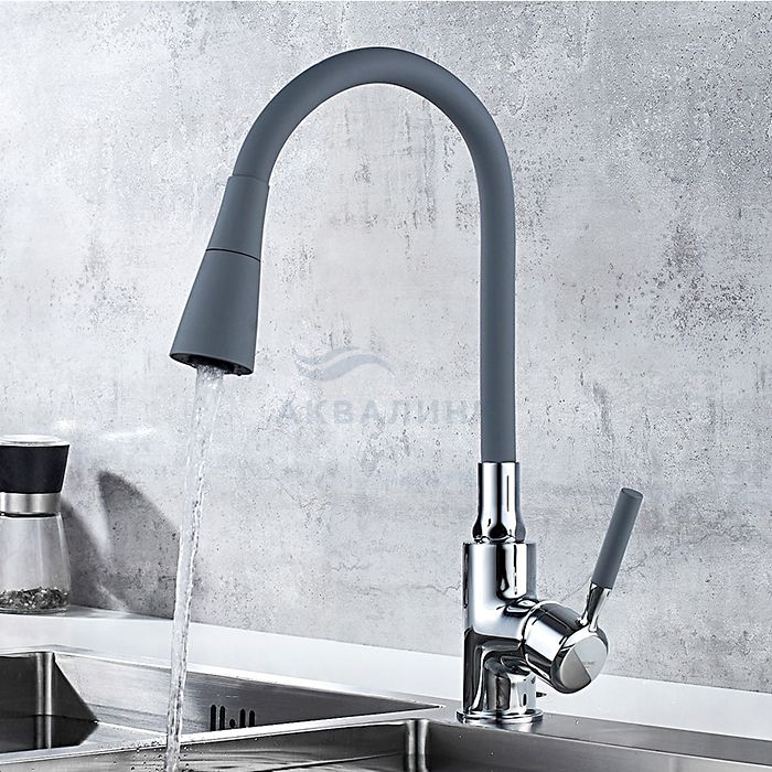 Смеситель для кухни LEDEME с гибким изливом L4199-9 серый/хром