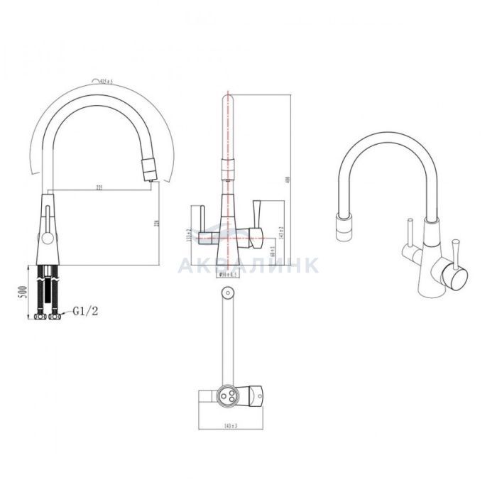Смеситель для кухни LEMARK Comfort с питьевым каналом, гибкий излив, хром LM3075C