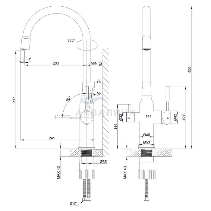 Смеситель для кухни LEMARK Expert с питьевым каналом, гибкий излив, сатин LM5083S-Black