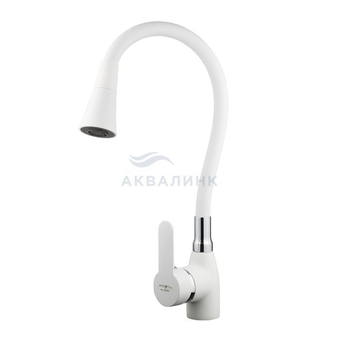 Смеситель для кухни MELODIA Ostessa (Остерия), гибкий излив с насадкой "колокольчик", белый, MDV40617White