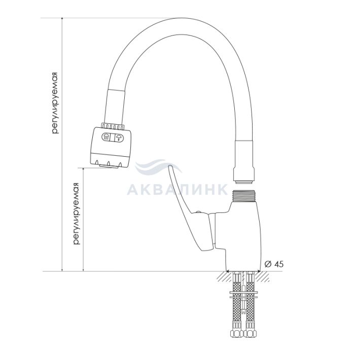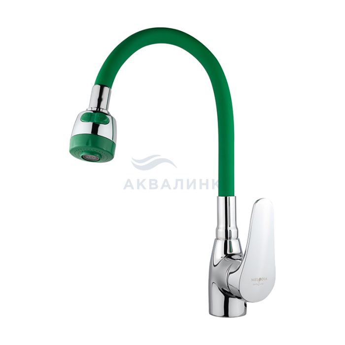 Смеситель для кухни MELODIA Ostessa (Остерия), гибкий излив с насадкой, зеленый, MDV40616Green