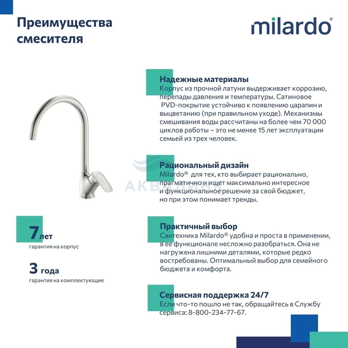 Смеситель для кухни, сатин, Rora, Milardo, RORBN0JM05 Смеситель для кухни Rora отличается универсальным характером: основной акцент в его дизайне приходится на плавные линии корпуса и трендовый цвет. Покрытие более редкого сатинового цвета способно придать более приятный теплый оттенок кухонной зоне. Благодаря специально подобранному углу наклона и плавному изгибу корпуса смеситель подойдет даже для глубокой кухонной мойки. Гибкая подводка и крепеж в комплекте.