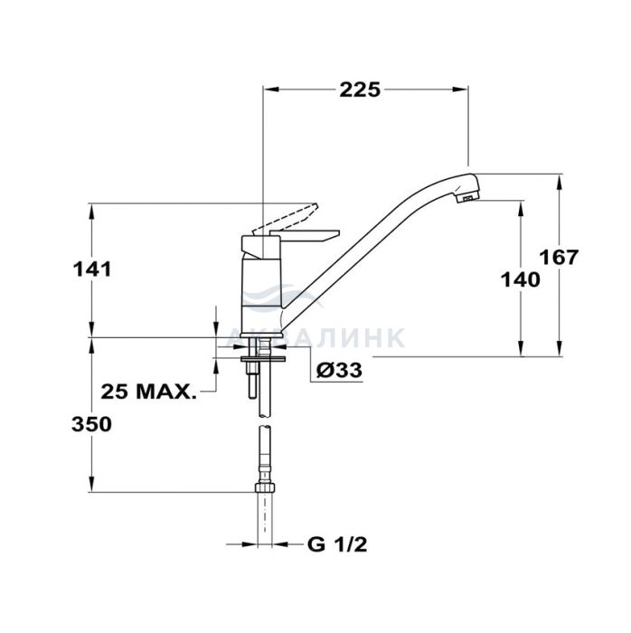 Цвет - хром С поворотным изливом 225 мм С противонакипным аэратором Размер аэратора: M24x1 С картриджем 35 мм Гибкая подводка 1/2”