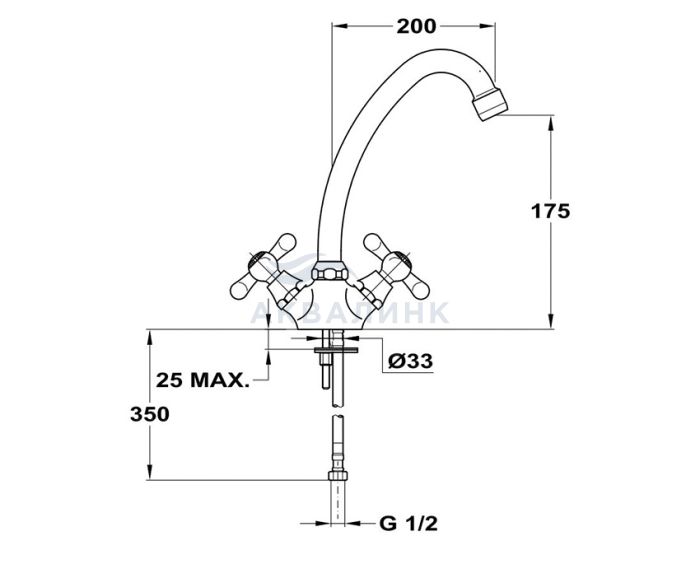 С поворотным изливом 200 мм С противонакипным аэратором Размер аэратора: M22x1 Гибкая подводка 1/2” Запорный клапан: керамика
