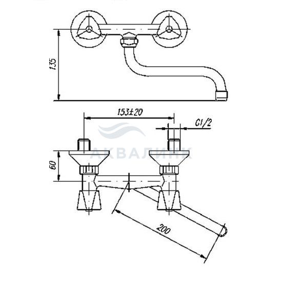 Смеситель для кухни настенный MOFEM Металлика (301 ME) кран-букса резина, 142-0005-02