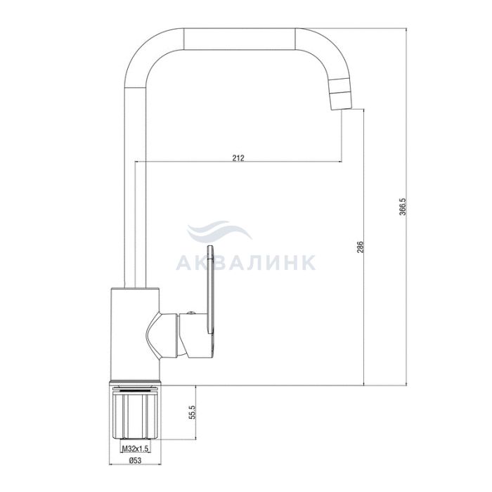Смеситель для кухни VODA Waterfall (Водопад), Г-излив, черный WF519B