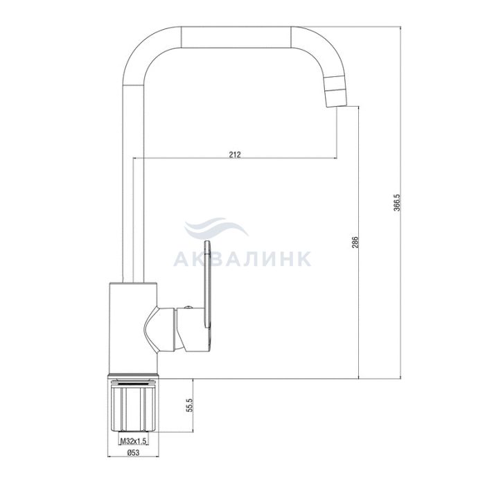 Смеситель для кухни VODA Waterfall (Водопад), Г-излив, хром WF519