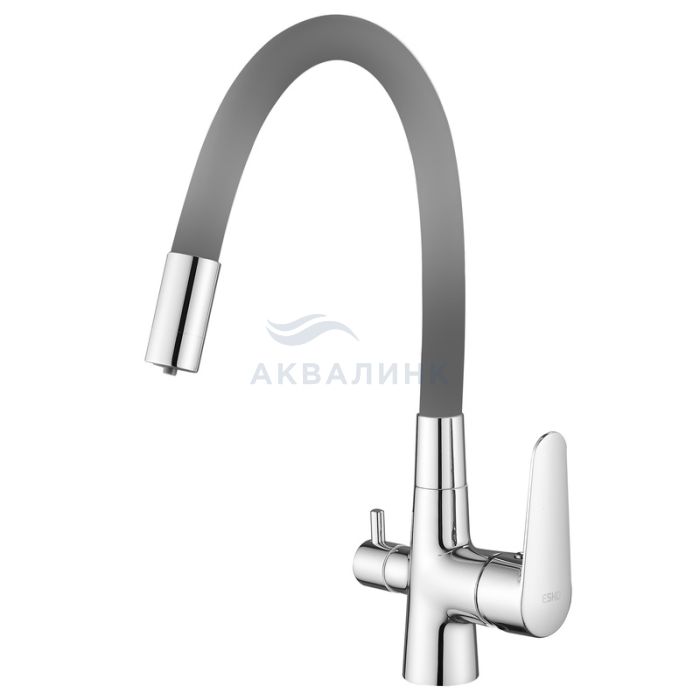 Смеситель для кухни ESKO Coral (Кораллы) с питьевым каналом, гибкий излив серый, хром CL03GChr
