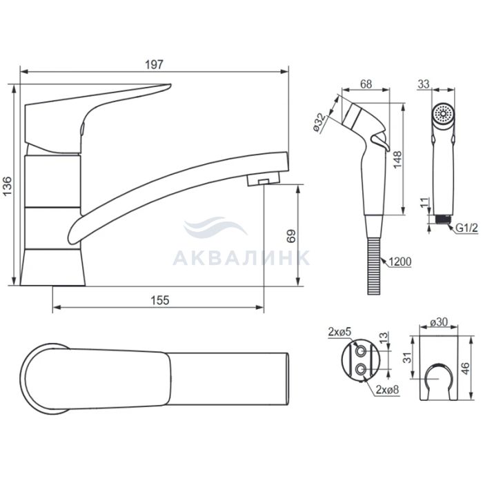 Смеситель для раковины Damixa Jupiter 770230001 с гигиеническим душем