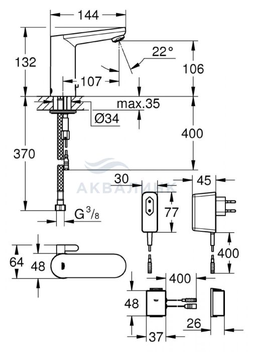 Смеситель для раковины GROHE Eurosmart Cosmopolitan E 36325001 сенсорный