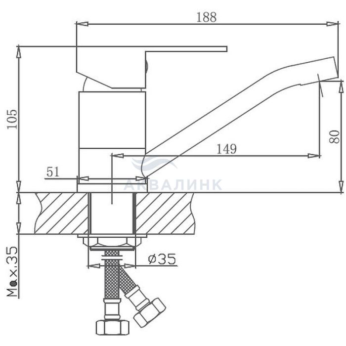 Смеситель для раковины Haiba HB45802 с поворотным изливом, с гайкой, нерж.сталь