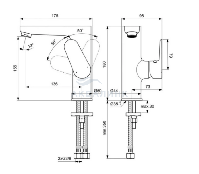 Смеситель для умывальника ручка сбоку одноручный хром CERAFINE O Ideal Standard BC555AA