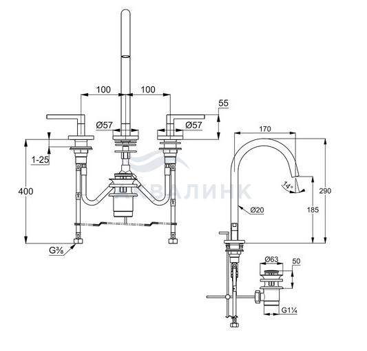 Смеситель KLUDI NOVA FONTE Puristic для раковины на три отверстия двухвентильный