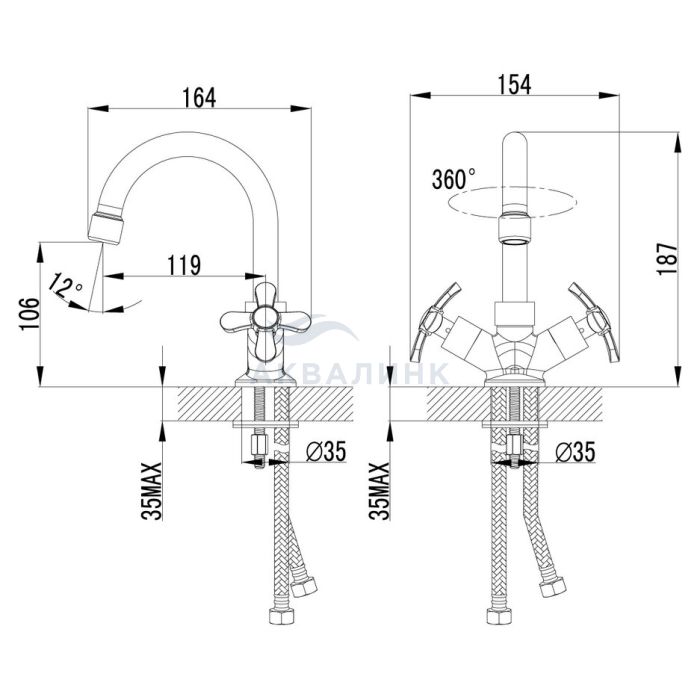 Смеситель для раковины LEMARK Partner с поворотным изливом, хром LM6547C