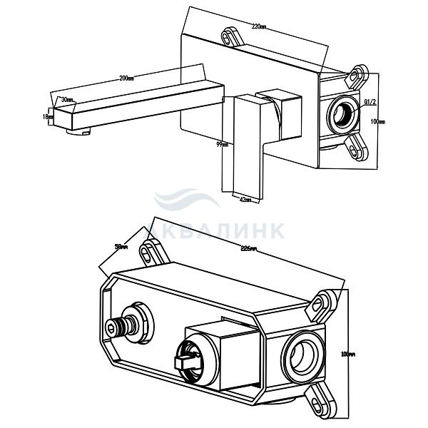 Смеситель для раковины Swedbe Platta (Платта) 5501B встраиваемый в монтажном боксе, черный