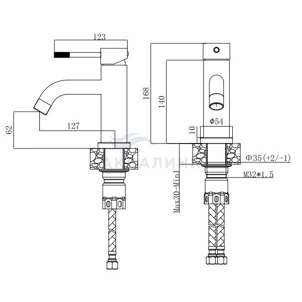 Смеситель для раковины VODA Vessel Black (Лайнер), черный VSL26B