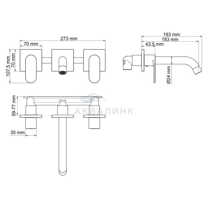 Смеситель для раковины WasserKRAFT встраиваемый Elbe 7445 черный