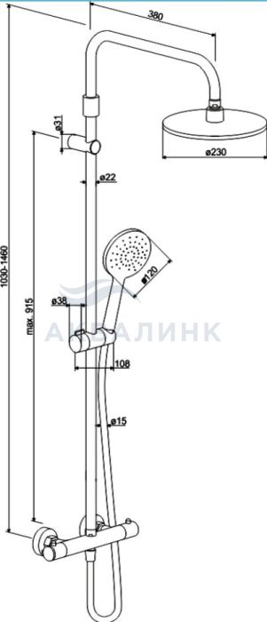 Система душевая Damixa Option DX218091300 с термостатом, черная