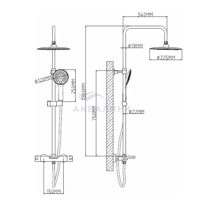 Система душевая ESKO Singapore (Сингапур) c термостатом, каскадный излив, хром STT5054