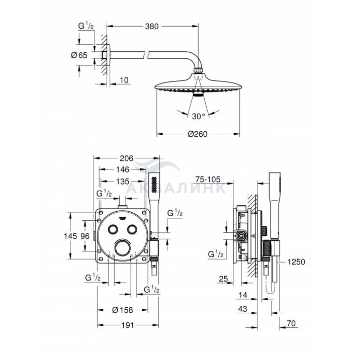 Система душевая GROHE Grohtherm SmartControl 34744000 встраиваемая