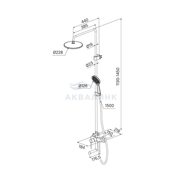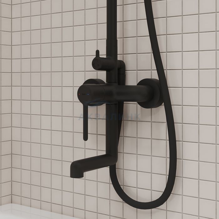Душевая система с тропическим душем и изливом, черный матовый, Aiger, IDDIS, AIGBL3Fi06
