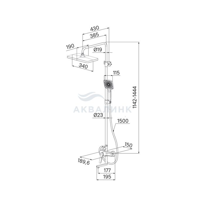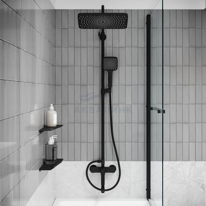 Душевая система с тропическим душем и изливом, матовый черный, Parker, IDDIS, PARBL3Fi06