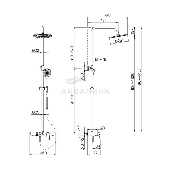 Система душевая IDDIS Шелфи (Shelfy) с тропическим душем, SHESB3Bi06