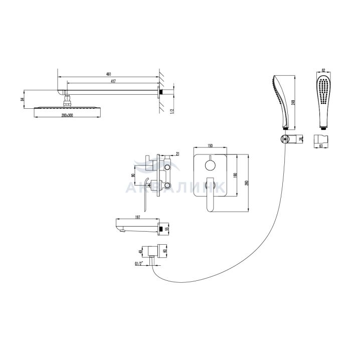 Система душевая LEMARK Melange встраиваемая, с изливом, белый/хром LM4922CW
