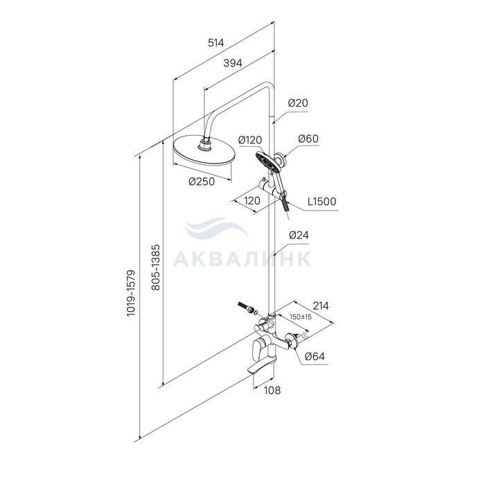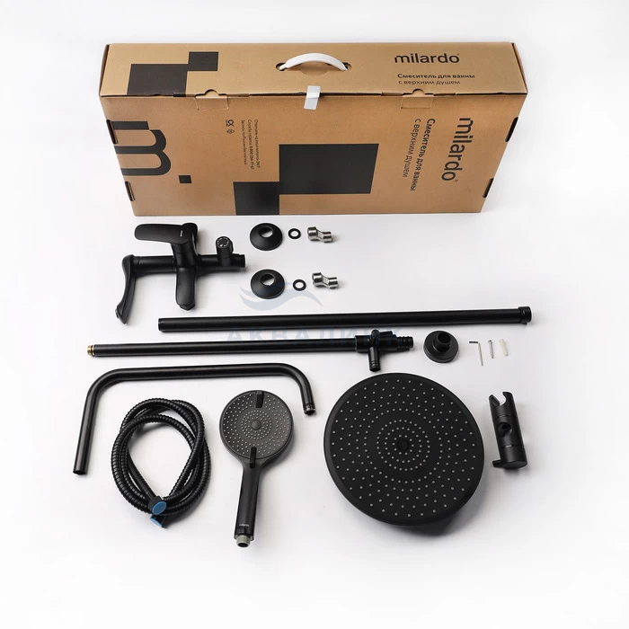 Система душевая Milardo Рора (Rora), верхний душ и излив, черный матовый, RORBL4FM06