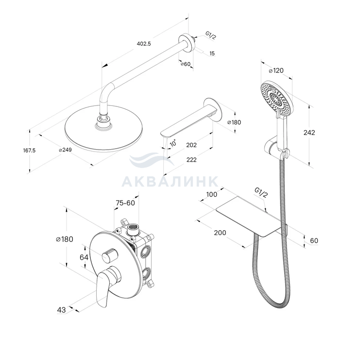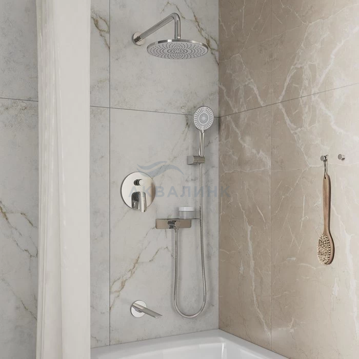 ОБРАЗЕЦ С ВЫСТАВКИ! Душевая система скрытого монтажа с тропическим душем, ручным душем и изливом, черный матовый, Rora, Milardo, RORBL03M68 Душевая система Rora создана для тех, кто отдает предпочтение пространству, где нет ничего лишнего. С моделью в трендовом черном цвете легко реализовать наиболее интересные дизайнерские проекты: так, например, излив с ручной лейкой и тропический душ можно разнести по разным стенам. Все внутренние механизмы системы будут спрятаны внутри встраиваемого монтажного блока, видимыми останутся только элементы управления. Душевая система на три выхода – универсальное решение: она подходит для установки как в зоне с ванной, так и душевой зоне. • Установка монтажного блока проста и возможна на стенах практически любой конструкции и материала: от гипсокартона до кирпича. А глубина установки регулируется – достаточно срезать выступающие гофрированные края.
