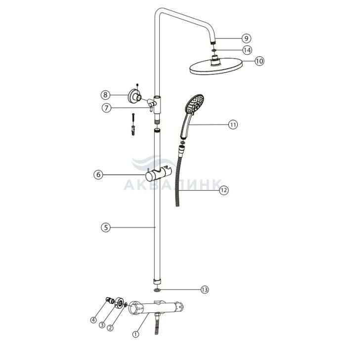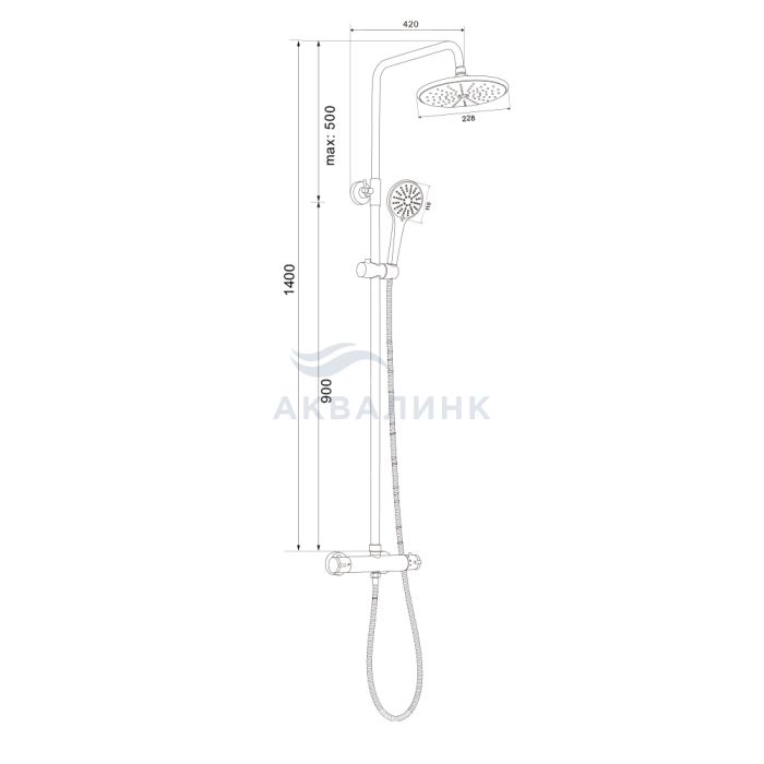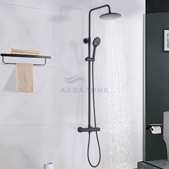 Система душевая OLIVE'S Termo с термостатом и верхним душем, черный, 34291TMB