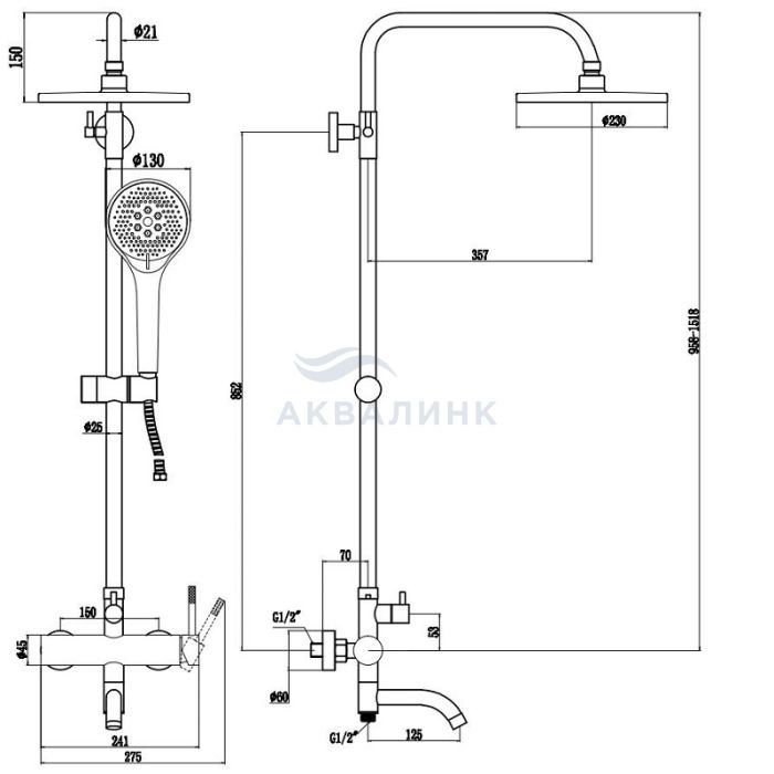 Система душевая со смесителем VODA Vessel (Лайнер) VST250VSLGM