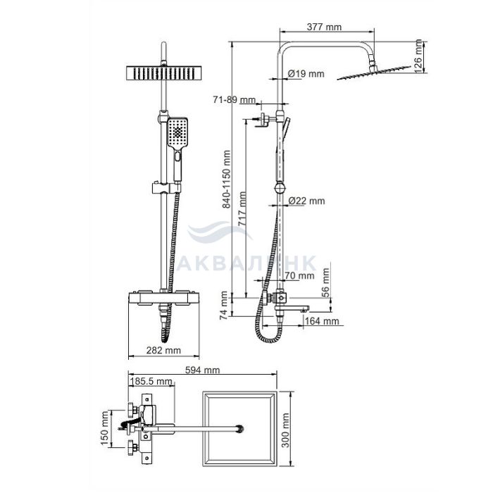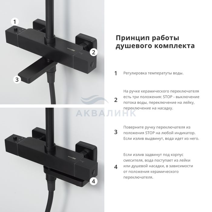 Система душевая WasserKRAFT A29901 термостат, с верхним душем, лейкой и изливом, черный