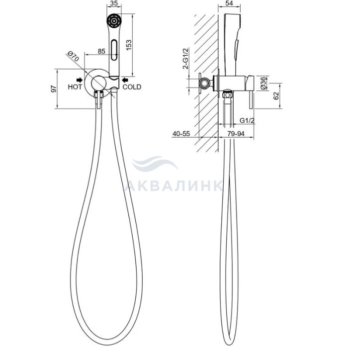 Смеситель для биде Aquatek Европа AQ1020MB с гигиеническим душем