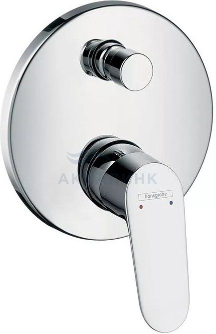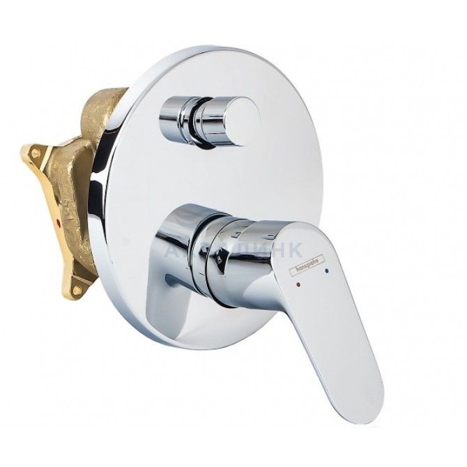 31945000 HG Focus смеситель для ванны (внешняя часть) • для установки требуется скрытая монтажная часть: 01800180 • вид соединения: скрытая часть • регулируемое ограничение температуры • с переключателем вакуумного типа • с шумопоглотителем • класс шума: I • класс расхода воды: D, B • комплект поставки: рукоятка, гильза, розетка, переключатель, функциональный блок
