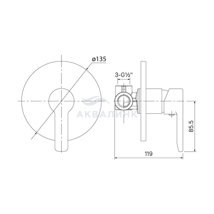 Встраиваемый смеситель с одним выходом, однозахватный, латунь, увеличенное никель-хромовое покрытие, керамический картридж Softap. Упаковка: картонная коробка, индивид. мешок