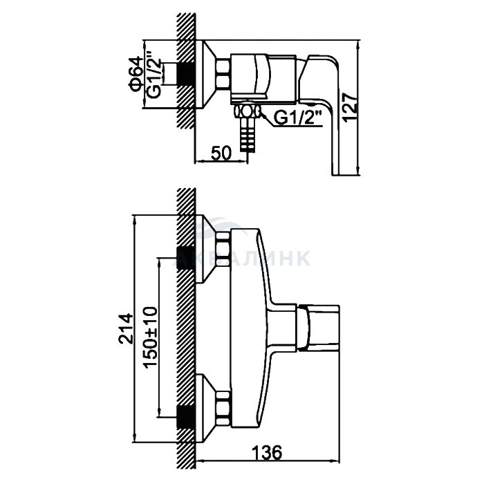 Смеситель для душа LEDEME L2044. Керамический картридж 35 мм В комплекте Эксцентрики Отражатели