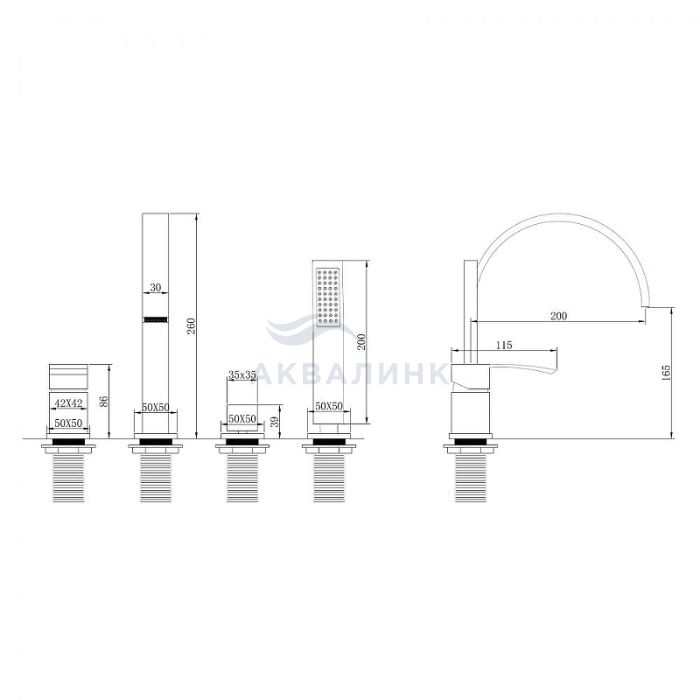 Смеситель для ванны и душа ABBER Daheim AF8613SP на борт ванны