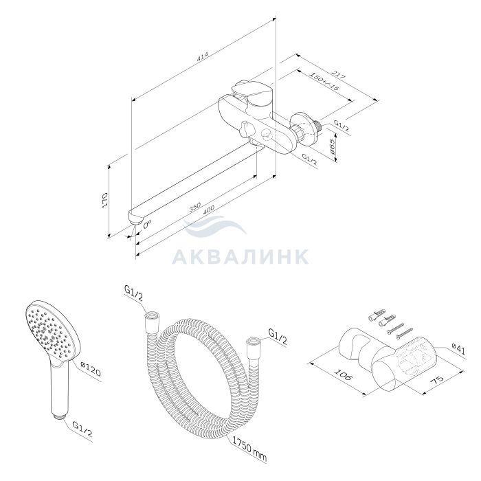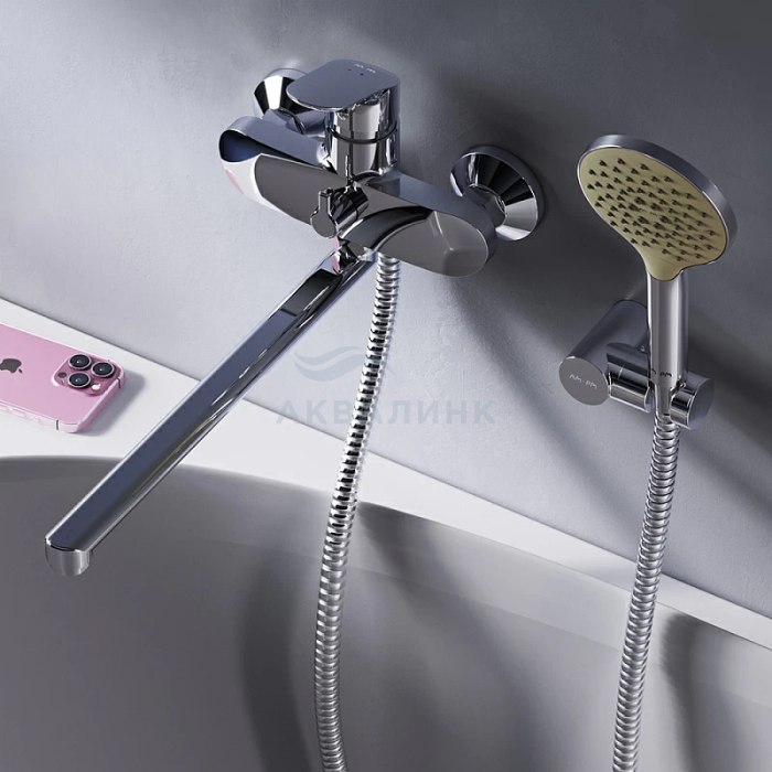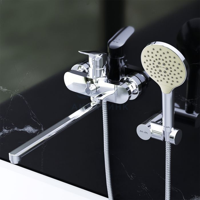 Смеситель для ванны и душа AM.PM Like длинный излив, душевой набор, хром F8095000