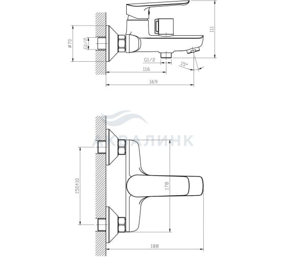 Смеситель ванна/душ "Lagos" кор/изл, без акс. LG 54 ESKO Корпус: PPA,изолированный водоток. Картридж: универсальный ESKO,35 мм. Переключатель: механический,керамика.
